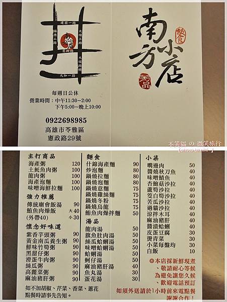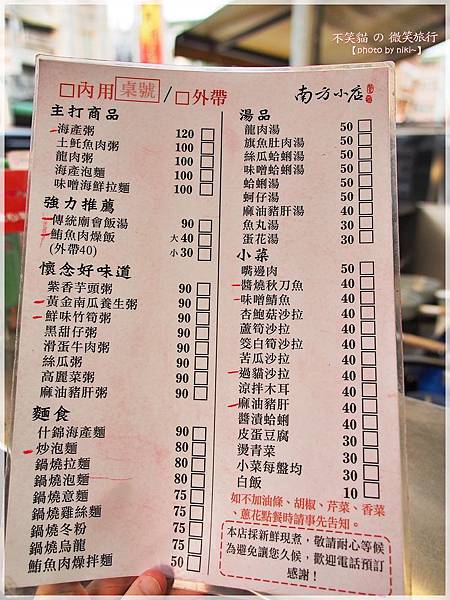 ↓南方小店的菜單,