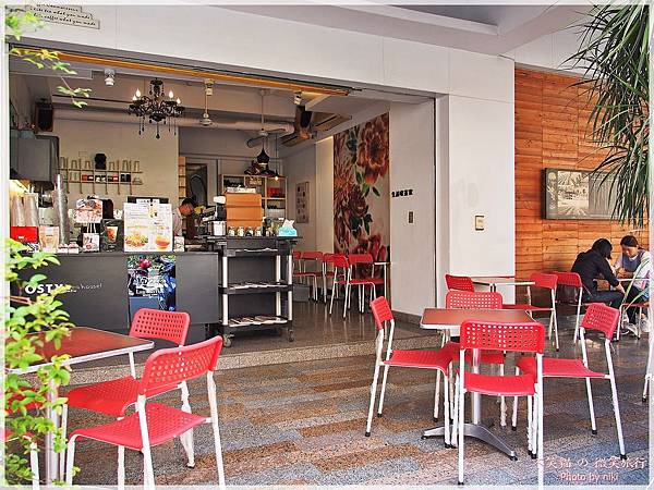 搭配清一色的紅/白桌椅,整體明亮乾淨。
